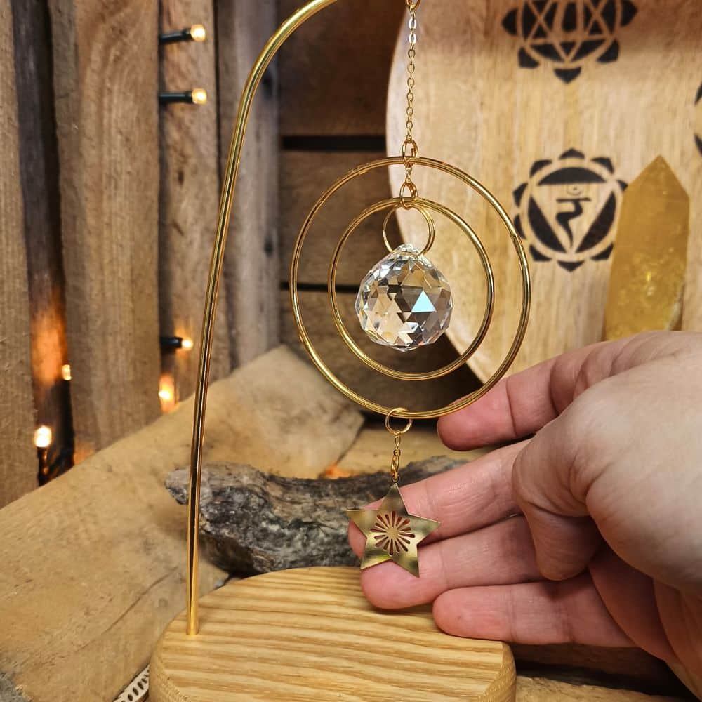 Faites de votre chez-vous un lieu qui vous correspond, où sérénité et douceur sont les maîtres-mots ! En Feng Shui, l’attrape-soleil est un objet traditionnellement utilisé pour l’harmonie qu’il apporte. Exposez-le à la lumière du soleil et invitez ainsi le Chi à circuler dans votre espace de vie. Grâce à son format « à poser », vous pouvez le poser où bon vous semble, en contact direct avec la lumière du soleil pour illuminer votre intérieur. Tout comme le lever et le coucher du soleil, la danse du cristal viendra habiller vos murs de ses mille et un faisceaux. Profitez du moment présent et prenez un instant pour admirer le spectacle de lumière qui se produit sur vos plantes et dans votre intérieur… Telle une boussole, son étoile vous indiquera le chemin à suivre dans votre quête d’épanouissement personnel.
