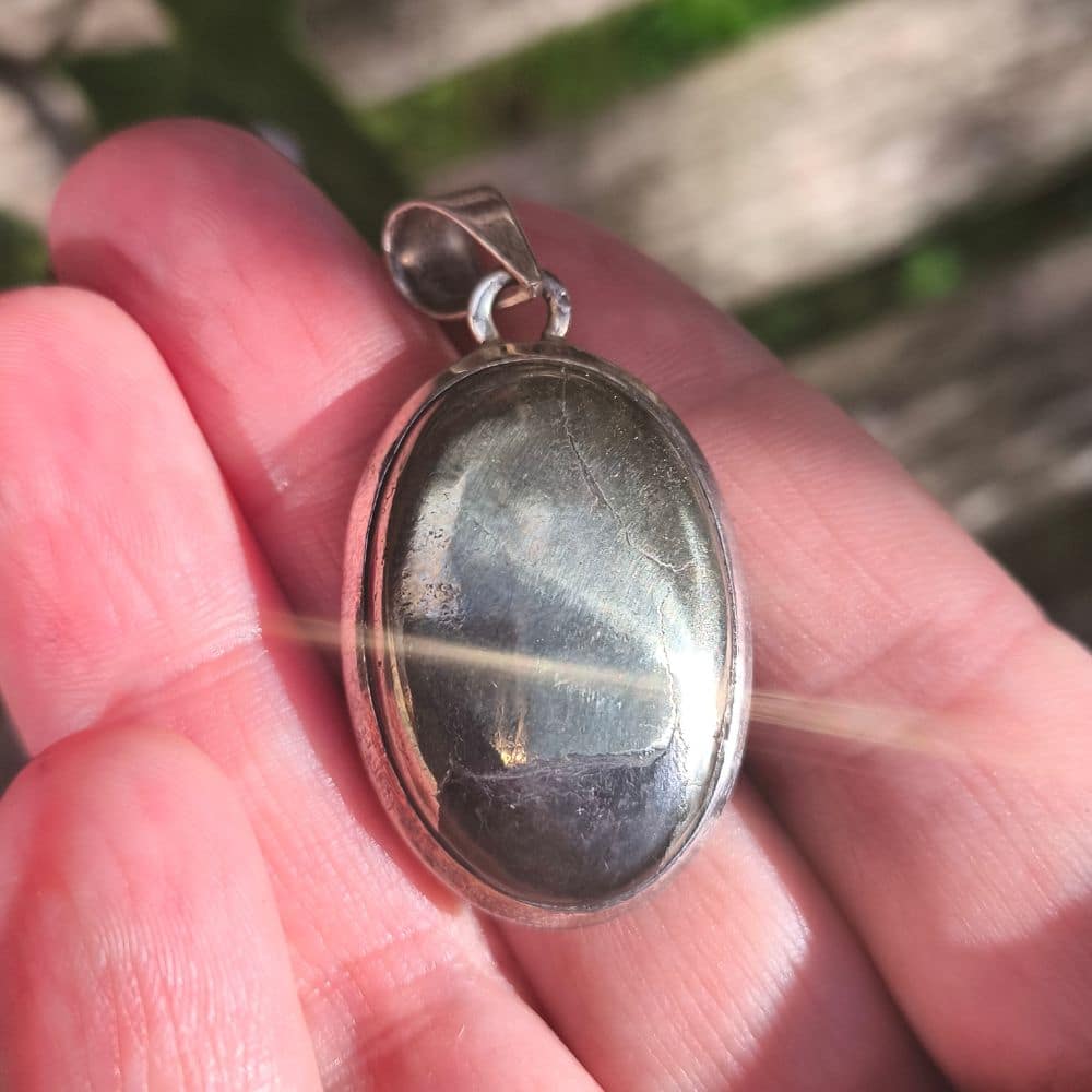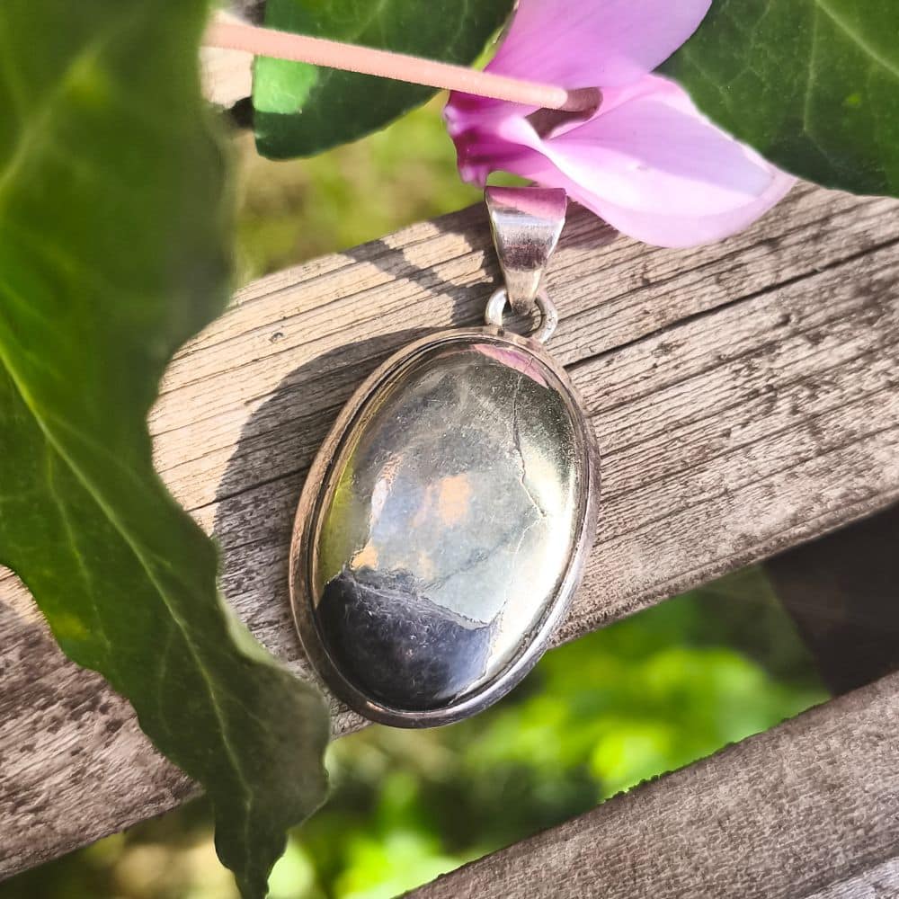 Pendentif Pyrite sur Magnétite serti Argent 925