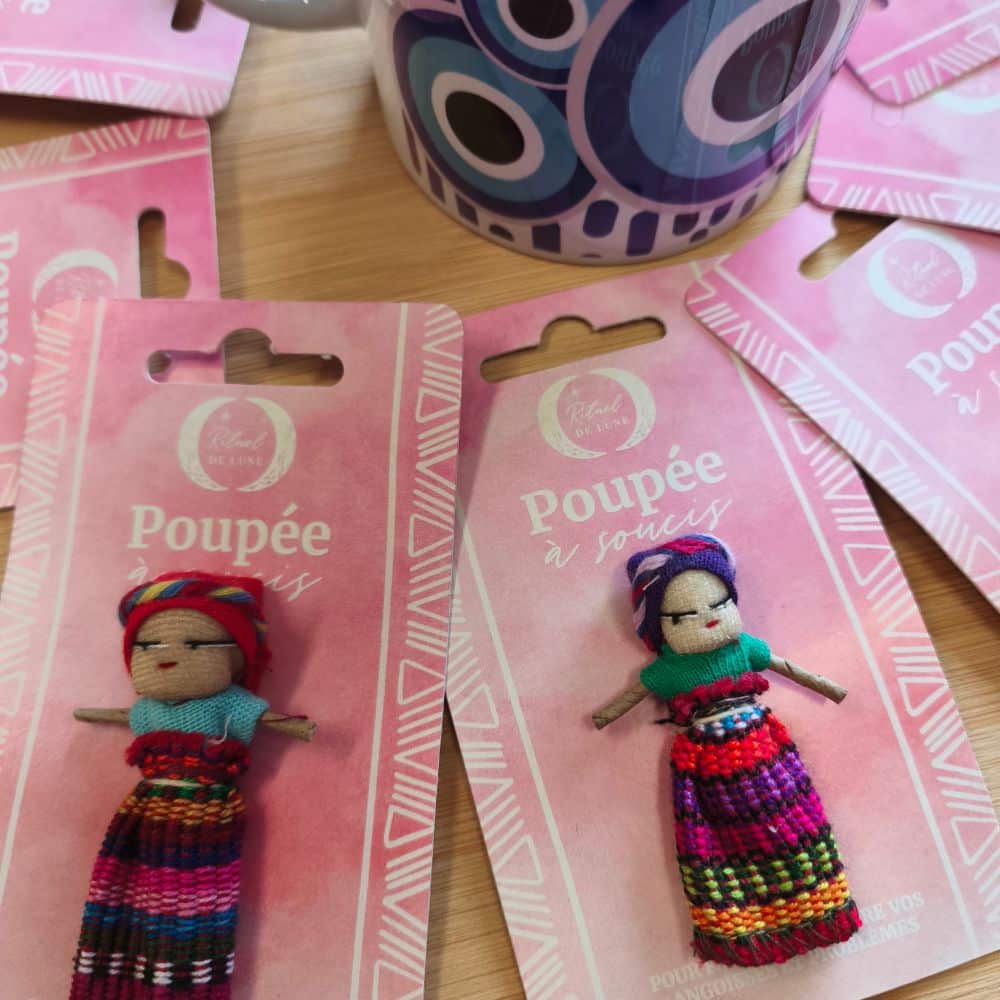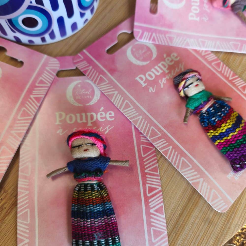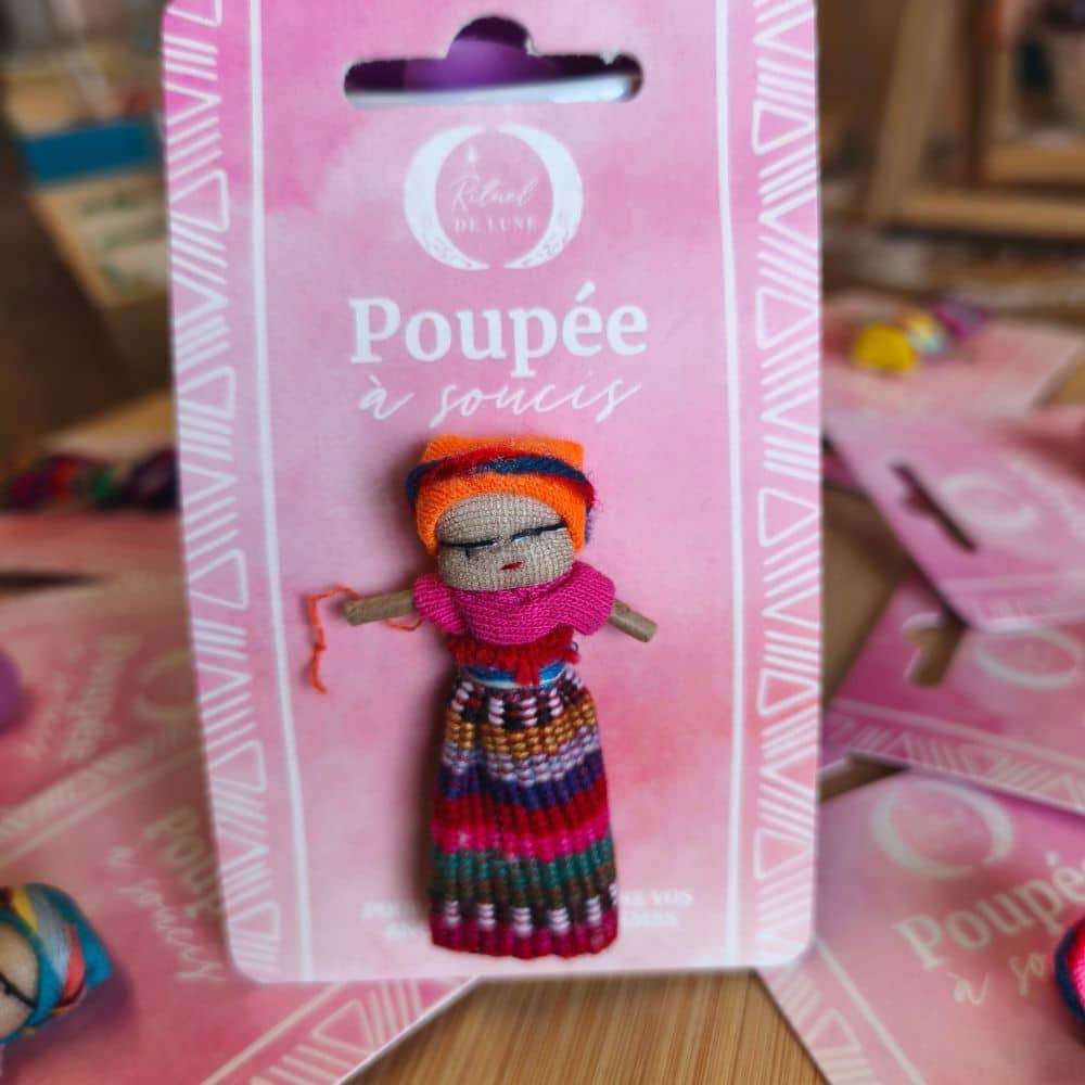 Au Guatemala, la tradition veut que chacun possède une petite poupée à soucis. La légende raconte qu’elles ont un pouvoir magique : elles font disparaître toutes les peines possibles et imaginables pendant la nuit. Tous les soirs avant de vous endormir, racontez à votre poupée vos plus grands aux plus petits tracas et chagrins de votre quotidien. Puis déposez-la sur votre table de nuit ou sous votre oreiller. À peine endormi, votre poupée prendra vos soucis avec elle, en vous laissant dormir sereinement. Le lendemain, comme par magie, tous vos soucis auront disparu !
